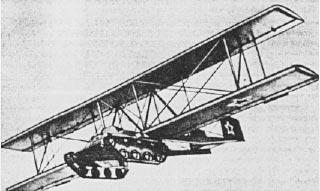 Al igual que otras locas ideas sobre tanques, este concepto se pensó durante la época de la primera posguerra, pero más hacia la década de 1930, cuando ya muchos países habían abandonado la idea de tanques pesados y grandes. Si ya de por sí los blindados eran difíciles de superar para la infantería, ¿qué decir de tanques que llegaran al campo de batalla con alas?