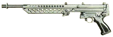 El Stoner 63 en su configuración de fusil de asalto. Obsérvese que el cilindro de gas está sobre el cañón.
